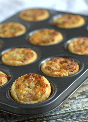 Quick And Easy Mini Bacon Cheese Quiche Makes 24 Recipe Puff Pastry Crust Puff Pastry Recipes Puff Pastry Mini Quiche