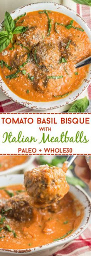 Tomato Basil Bisque With Italian Meatballs Paleo Whole30 Recipe Tomato Basil Bisque Whole 30 Recipes Italian Recipes